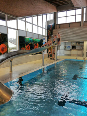 Jede zweite Woche, am Dienstag, geht die Klasse 3/4 der Grundschule Auernheim mit ihrer Lehrerin Frau Bummer zum Schwimmunterricht nach Nattheim ins Ramensteinbad. Der Bus holt uns an der Bushaltestelle um 7.55 Uhr ab, dann fahren wir in ungefähr 8 Minuten nach Nattheim. Dort ziehen wir uns in den Umkleiden um und duschen dann. Nun geht es los! Wir spielen zuerst ein Spiel, Tiger fangen Enten. Nun trainieren wir für das bronzene Schwimmabzeichen. Wir schwimmen drei Runden im Tiefen, dann üben wir den Startsprung. Es folgt das Tieftauchen. Wir holen Ringe vom Grund.Nach zwei Stunden heißt es duschen, umziehen, föhnen, dann holt uns der Bus um 9.25 Uhr ab und bringt uns alle wieder nach Auernheim zurück. Schwimmen macht Spaß! In der nächsten Woche dürfen die Kinder aus der Klasse 1/2 zum Schwimmen fahren.
