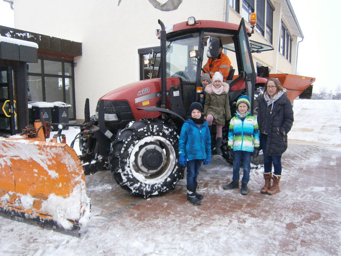 Katja Mayer betreut in familiärer Athmosphäre die Schulkinder in Auerheim. Neben anderen Highlights wie backen, basteln und spannenden Experimenten, bestellt Frau Mayer schon mal den Winterdienst zur passenden Zeit, sodass die Kinder auf dem Schneepflug mitfahren können.