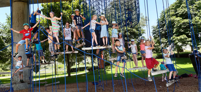 Bei herrlichem Wetter war die gesamte Grundschule Auernheim am Mittwoch, 28.06. 2019 im Brenzpark in Heidenheim. Im „Grünen Klassenzimmer“ waren die Kinder interessiert am Kräutergarten und stellten mit Eifer eigenes Kräutersalz her. Eine weitere Gruppe bastelte Blütenkunstwerke oder baute Rindenschiffe zur Fahrt auf der Brenz. Dann packten alle „die Badehose“ aus und ab zu den Wasserspielen. Die angenehme Abkühlung war dringend notwendig, an diesem heißen Tag. Trotzdem zeigten sich alle Kinder begeistert von dem Theaterstück“ Der Herr der Diebe“, das wir im Naturtheater auf dem Schlossberg ansahen. Ein heißer, aber wunderschöner Tag!